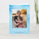 Esta moderna tarjeta de Navidades simples cuenta con copos de nieve sobre un fondo invernal azul claro. Feliz Navidad está escrito en un hermoso guión escrito a mano. Personalice esta tarjeta de Navidades con su foto y nombre de familia.