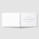 El moderno libro de invitados Boda blanco Minimalista Captura los mensajes más sentidos, los buenos deseos y los recuerdos de tu día especial con este elegante libro de bodas. Con una cubierta blanca nítida y una fuente de escritura negra intemporal, este diseño encarna la sencillez y la sofisticación, perfecta para cualquier tipo de recepción de bodas, desde clásica hasta contemporánea. A los huéspedes les encantará firmar sus nombres y dejar notas personales, creando un gran placer que apreciarán en los próximos años. Este libro de huéspedes, con su diseño limpio, complementa cualquier decoración y permite que tu historia de amor ocupe el centro del escenario. Estilo: Moderno, mínimo e intemporal Colores: Fondo blanco con elegante escritura negra Ocasión: Boda en recepción, ducha de novia o fiesta de compromiso Personalización: Fácil personalizar con tus nombres, fecha de boda, o un mensaje especial Haz que tu día de boda sea inolvidable invitando a tus seres queridos a compartir sus palabras en este moda, sencillo libro de visitas.