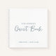 El libro de invitados SOFT o HARDCOVER enlazado a una espiral permite a los huéspedes firmar sus mejores deseos, incluso añadir fotos instantáneas en las páginas. En la parte delantera aparece su nombre, fecha boda, las palabras "Nuestro libro de invitados Bodas" en moda con polvorientas letras azules.