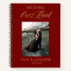 Modern Dark Red Boda Guest Book : Un diseño elegante y moderno con elegante caligrafía dorada cepillado sobre un fondo rojo oscuro. Personalizar el frente con tu foto favorita y tus detalles personales. El recuerdo perfecto para una celebración de boda o aniversario.