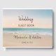 A sus bodas les encantará este libro de visitas temático sobre la playa. Con un océano tranquilo de color turquesa y una playa de arena dorada, es ideal para los amantes de los viajes. Personalice el uso de sólo sus nombres y la fecha de su boda. Se han seleccionado fuentes manuscritas modernas. Esto es parte de nuestra colección de playas de verano. Tómese un momento y busque elementos coincidentes y coordinados.