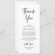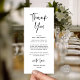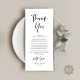 Comparte el amor y muestra tu aprecio a tus invitados, cuando se sientan en su asiento y leen esta encantadora carta de agradecimiento por su encanto especial en blanco y negro (Gracias). ¡Es una manera maravillosa de empezar tu celebración especial del día! Con esta tarjeta se establecerá el tono de un evento inolvidable. La tarjeta de agradecimiento incluye un tema de escritura de diseño moderno, añadiendo un toque de elegancia eterna a su celebración. Diseñado por TeeshaDerrick