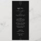 Este elegante menú de boda negro de la colección Everly presenta un blanco inmaculado, detalles geométricos de diseño artístico y espaciado editorial. Los sencillos y delgados motivos de tres líneas enmarcan un texto elegante para un refinado y moderno aspecto minimalista, listo para la noche. Este menú de la cena se puede utilizar para la recepción de bodas, la cena de ensayo o cualquier evento.