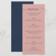 Moderno menú Boda azul marino y Rubor