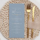 Eleva tu recepción con nuestro minimalista menú boda azul polvoriento, una mezcla perfecta de sencillez y elegancia. Con un corazón de cuerda dorada de moda, la carta desprende sofisticación moderna y encanto intemporal. Ideal para parejas que buscan un toque refinado, esta carta le da un toque de elegancia a su experiencia. Aprovecha la belleza de la simplicidad con esta exquisita adición a tu día de bodas, prometiendo una celebración llena de amor y estilo.