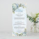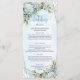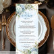 Moderno menú Boda de oro blanco con flores azul tu