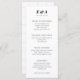 Una carta sencilla y moderna de personalizable delgada para la cena en blanco y negro clásico. Con un audaz serif dos letras monograma y un elegante texto de fecha más las suaves líneas grises en el reverso le dan a cualquier mesa o lugar un toque de modernidad.