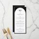 Este bonito menú boda presenta un diseño de arco y un llamativo esquema de colores en blanco y negro. La tipografía audaz añade un toque de sofisticación, mientras que el monograma añade un toque personal. El menú está impreso en papel de alta calidad, asegurándose de que se mantenga bien contra el manejo y derrames. Úsalo para darle un toque final a la recepción de tu boda e impresionar a tus invitados con tu atención a los detalles.