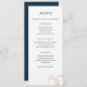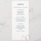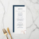 El texto limpio y moderno se personaliza fácilmente en esta moda, formato delgado, menú boda. El azul marino y el blanco se sienten sofisticados y frescos cuando se acentúan con un falso rosa de Relieve metalizado dorado gráfico de anillos de boda entrelazados. Para un toque especial adicional, agregue su foto de compromiso favorita a la parte posterior usando las opciones "personalizar".