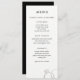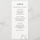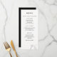 El texto limpio y moderno se personaliza fácilmente en esta moda, formato delgado, menú boda. Negro y blanco sofisticado y fresco cuando se acentúa con un falso Relieve metalizado plateado de anillos de boda interbloqueados. Para un toque especial adicional, agregue su foto de compromiso favorita a la parte posterior usando las opciones "personalizar".