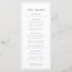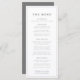 Los menús verticales de eventos altos son de un gráfico muy sencillo, gris oscuro y blanco. Perfecto para una cena sencilla, mínima o moderna, de boda o de eventos corporativos formales. Edite con sus propios detalles del menú de eventos. Hay otros elementos coincidentes disponibles. Diseñado por www.mylittleedenweddings.com