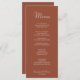 Presentamos nuestro "Moderno menú Minimalista plano de terracota", un elegante y elegante complemento para elevar su decoración boda. Esta carta combina a la perfección el minimalismo moderno con el acogedor calor de la terracota, lo que lo convierte en una elección única y de buen gusto para su recepción. Con un fondo de terracota adornado con un elegante guión blanco y un elegante tipo de letra, esta carta plana no sólo presenta sus propuestas culinarias, sino que también le añade un toque de calidez y sofisticación a sus mesas. Con un amplio espacio para mostrar tus objetos de menú, te asegurará que tus huéspedes puedan apreciar tus delicias culinarias con estilo. Elija el "Modern Minimalista menú Flat Terracotta" para crear una experiencia gastronómica inolvidable para sus huéspedes. Aumente la impresión de la recepción de bodas con este menú de diseño que refleja su gusto irreprochable y combina la elegancia moderna con el encanto acogedor de la terracota. La decoración boda destaca por su cocina de corte clásico.