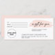 Estos certificados de regalo de moda y de diseño en un rosa suave son perfectos para pequeñas empresas como centros de bienestar, spas, maquilladores, estilistas exhaladores y esteticistas. Con elegantes fuentes manuscritas y un diseño minimalista, estos vales le dan un toque personalizado a sus clientes. Personalizable fácil: agregue su propio logotipo y detalles de contacto para alinearse perfectamente con su marca. Ideal para ofrecer regalos reflexivos que muestren su negocio.