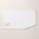 Nombre de oro monograma elegante personalizado y toalla de baño inicial sobre blanco. Refresca la decoración del baño con un estilo tipográfico minimalista.