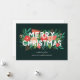 Envía hermosos saludos de Navidad personalizados con esta tarjeta elegante, que presenta varios elementos florales dibujados a mano (pino, flores, brotes, piñas, hojas y ramitas). La tipografía moderna dice "Feliz Navidad" en blanco, y los elementos de follaje están superpuestos debajo, con algunos elementos encima del texto. Las plantillas de texto tanto en la parte delantera como en la trasera son fáciles de personalizar. El color de fondo (que se muestra en verde oscuro) se puede personalizar a un color diferente, si se desea. *Todo el arte creado exclusivamente por Orabella Prints - todos los derechos reservados.
