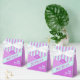 El moderno Pastel Verde azulado de rayas rosadas Favor Box es un fiesta perfecto para el cumpleaños de los chicas o cualquier ocasión. Los suaves colores pastel, verde azulados y rosas, crean un ambiente apasionante para el diseño. Las franjas verticales de la cubierta van hasta la parte de atrás, mientras que los lados están lisos. El anverso está formado por una franja verde azulada en tonos pastel en la que se resalta el nombre de la celebración, mientras que en la esquina inferior derecha se encuentran los detalles de cumpleaños con un fondo rosa oscuro. El "gracias" sobre un fondo rosado oscuro en forma de diamante acentúa la cubierta de franjas verticales.