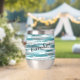 Este bonito vaso de vino termal presenta un moderno patrón abstracto de pinturas grises plateadas en un fondo blanco. Se añade un poco de falso purpurina plateado para mayor interés. En el centro está tu nombre u otro texto en escritura negra.