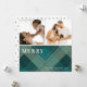 Moderno Plaid Verde Azul 2 Foto Feliz Navidad