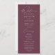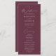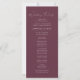 Elegante programa de bodas con un moderno guión de caligrafía blanca con fondo morado para crear un diseño perfecto para bodas de todos los estilos y estaciones. Personalice el frente del moderno programa de bodas con sus nombres, fecha de boda y ubicación, y orden de la ceremonia. El sencillo programa de bodas moradas se revierte para mostrar una lista de tu fiesta de bodas. El diseño fue creado para coordinar con nuestra colección de bodas Modern Elegance.