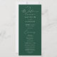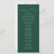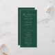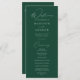 Elegante programa de bodas con un moderno guión de caligrafía blanca con un fondo verde para crear un diseño perfecto para bodas de todos los estilos y estaciones. Personalice el frente del moderno programa de bodas con sus nombres, fecha de boda y ubicación, y orden de la ceremonia. El sencillo programa de bodas verdes se revierte para mostrar una lista de tu fiesta de bodas. El diseño fue creado para coordinar con nuestra colección de bodas Modern Elegance.