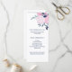 Este elegante y moderno programa de bodas cuenta con flores y hojas de color rosa y azul marino con un aspecto acuático. Hemos usado arte de LABFcreations.