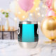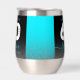 Celebra el gran estilo de las seis grandes con este vaso de vino sin tallo de acero inoxidable, que incluye llamativos bloques negro, blanco y azul hielo y letras escritas a mano sobre un azul hielo purpurinoso, negro rico y gris ahumado. El reverso muestra un diseño idéntico. Diseño © W.H. Sim. Ver más en zazzle.com/expressionsoccasions