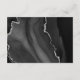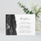 El borde izquierdo de esta elegante y moderna tarjeta del recinto de la recepción de bodas cuenta con un borde de batida de color negro adornado con un falso purpurina plateado. El título está escrito a mano, con el texto del personalizable debajo en una fuente de copperplate gris carbón en un fondo blanco. El reverso presenta un diseño de ágata negro y plateado a juego.