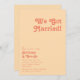 Este anuncio de fuga moderno retro con crema de naranja es perfecto para su sencilla y vintage boda bohemio tropical de verano, llena de color. Su fuente bohemia única de mediados de siglo le da a este diseño un ambiente hippie clásico minimalista y divertido. Si está buscando un diseño que presente colores brillantes y audaces para su boda creativa de los 70 en la playa, entonces este producto, y su colección de boda coordinada, son precisamente lo que está buscando. Siéntase libre de cambiar el color y agregar su propia obra de arte, gráficos o fotos. Si tiene alguna pregunta sobre el diseño de este producto, no dude en hacérnoslo saber.