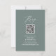 Moderno Sage Green Elegant Script Boda Minimalista QR Código RSVP Tarjeta de Gabinete. Celebra tu día especial con este elegante y hermoso diseño de invitación a la boda para embellecer tu ocasión especial. Todos los textos están preorganizados para que puedas personalizarlos fácil y rápidamente con tus propios detalles.