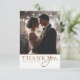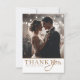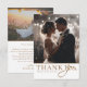 Celebre su día especial con esta elegante tarjeta de agradecimiento de boda que presenta un fondo blanco crujiente y un texto dorado brillante. Este diseño personalizable le permite agregar dos de sus fotos de boda favoritas junto con su propio mensaje personal. La paleta de oro sobre blanco crea un aspecto atemporal y sofisticado, perfecto para estilos de boda clásicos, minimalistas o contemporáneos. Es una hermosa manera de agradecer a sus invitados y crear un recuerdo que atesorarán.