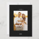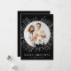 Elegante y moderna tarjeta de vacaciones con tu foto escondida en el interior de un marco circular blanco de explosión de sol. Personalice la tarjeta de Navidades de la explosión solar con su nombre familiar con letras blancas en un fondo negro o un color de su elección. La parte posterior de la tarjeta muestra el año y una foto adicional.