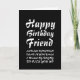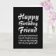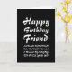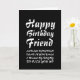 Celebra el cumpleaños de tu amigo con una risa. Esta tarjeta divertida presenta un diseño elegante, en blanco y negro con una tipografía llamativa.