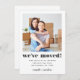Una tarjeta de fotos moderna para anunciar tu reciente traslado a tu familia y amigos. El diseño sencillo incluye tu foto en tu nuevo hogar. Personaliza con tus nombres y dirección nueva