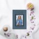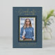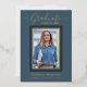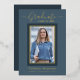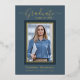 Bellamente elegantes tarjetas de invitación de graduación de 1 foto. Con texto moderno con caligrafía en su elección de Relieve metalizado oro, plata o rosa. Su foto también está muy bien bordeada en un guarnecido doble de Relieve metalizado. El diseño se complementa con un fondo en tonos azul polvoriento. La parte posterior de la tarjeta ofrece un espacio de texto de invitación personalizado para ese graduado especial. Para ver más artículos como este, visita mi tienda aquí en "www.Zazzle.com/LakeViewCardCo". ¡Gracias