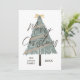 ¡Te encantará esta elegante y moderna tarjeta navideña de personalizable! Cuenta con un bonito y moderno árbol de Navidad decorado con una cinta dorada encima. Sobre eso están las palabras Feliz Navidad en la tipografía moderna. En la parte inferior hay un lugar para el nombre de tu familia y el año. La parte posterior de la bonito de la tarjeta también incluye miniversiones del árbol y tiene un lugar donde incluir un mensaje y todos los nombres de su familia. ¡Es la tarjeta de Navidades perfecta!