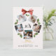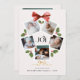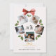 Un diseño de postal festivo que incluye cinco de tus fotos favoritas dispuestas alrededor de una flor de color agua verde acentuada por bayas rojas y arcos de cinta roja y dorada, sobre un fondo blanco nevado. "Alegría" aparece en el centro de la tipografía de la moda. Sus deseos y nombre familiar están debajo en un estilo moderno y elegante. En el reverso aparece el mensaje de su personalizado y la sexta foto. Personalice este diseño único de collage de fotos de vacaciones haciendo clic en el botón "Personalizar"!