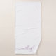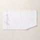 Una elegante toalla blanca a la moda con el nombre de un guión de lavanda con encantadores toques en las letras. Personaliza con tu nombre. Por una moderna atmósfera urbana.