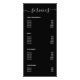 Personalizar esta elegante y moderna tarjeta de menú negro para crear fácilmente una lista de precios para sus servicios. Perfecto para peluquerías, salones de uñas, servicios de extensión y maquillaje, bares de belleza, spas, servicios estéticos, etc. Utilice la herramienta personalizar para cambiar los colores de fuente y fondo y eliminar/cambiar los iconos de los medios sociales. Contáctenos si necesita ayuda: yourstyle@pgco-designs.com.