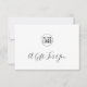 Este certificado de regalo tiene un fondo blanco en la parte delantera con las palabras "Un regalo para ti" en caligrafía y donde también puedes añadir tu logotipo. Personalízalo reemplazando el texto del marcador de posición y la imagen del marcador de posición con su propio logotipo. Para obtener más opciones como cambiar el tipo de letra, su tamaño y espaciado entre letras haga clic en el botón "Personalizar". *Tenga en cuenta que la marca de agua Zazzle que aparece en la vista previa del zoom NO aparecerá en el producto impreso final. © Rosewood y Citrus