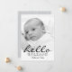 Personalizar este elegante Personalizado moderno foto del bebé anuncio de nacimiento con su propia información y su foto favorita de su pequeño ángel. Diseño limpio, fresco y ligero con texto Hola. *Crédito de la foto de la plantilla: © Eric Fleming