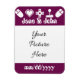Este imán tiene un borde de vino en la parte superior e inferior con un patrón de iconos relacionados con los videojuegos como un D-pad blanco, joystick, ratón de computadora y corazón de 8 bits y un lugar para sus nombres y la fecha del evento especial, geeky. Acaba de personalizarlo para todos tus amigos y familia añadiendo tu foto favorita al centro, creando un gran recuerdo para todos tus invitados que será útil y fácil de ver mientras tanto. Asegúrese de comprobar el resto de productos en el modo multijugador en vino para crear una verdadera coordinación para su evento.