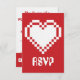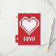 Esta divertida y geek tarjeta RSVP cuenta con un fondo rojo cereza y un gran corazón de 8 bits en blanco en el frente. Un borde de cerezo a lo largo del borde inferior de la tarjeta con un patrón de iconos relacionados con los videojuegos blancos, incluyendo joysticks, D-pads, ratones de computadora y corazones de píxeles, decora la parte posterior con un texto de ejemplo en su lugar superior que puede ser personalizado para adaptarse a sus necesidades. Asegúrese de comprobar el resto de productos en el juego Modo Multijugador en cereza para crear una verdadera coordinación para su evento.