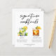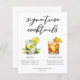 Este menú de cócteles de autor de verano presenta una tipografía negra simple sobre 2 de sus bebidas favoritas y sus ingredientes para su bar boda costero. Un dibujo de Mojito y Whiskey Sour de moda le da un toque divertido a su menú de bar. Con los nombres de la pareja y la fecha de recepción.