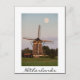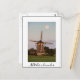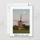 Postal de un molino de viento bajo una luna llena al comienzo de la noche en los Países Bajos con un borde blanco y el texto: 'Países Bajos'.