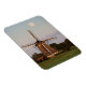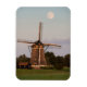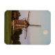 Imán fotográfico de recuerdo de un molino de viento bajo luna llena al comienzo de la noche en los Países Bajos.