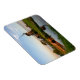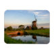 Imán de fotografía rectangular de recuerdo con un molino de viento al lado de una pequeña zanja con un puente al borde de un gran prado en el campo holandés al atardecer en Aarlanderveen, Holanda.