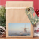 Pegatina rectangular con un molino de viento holandés tradicional cubierto en nieve en un paisaje rural en Aarlanderveen, los Países Bajos, en invierno en la luz caliente de la madrugada en la salida del sol. ¡Un gran recuerdo!