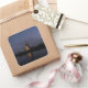 Pegatina de fotografía de recuerdo con molinos de viento históricos iluminados con reflexión en el agua del río durante la Hora Azul al comienzo de la noche en Kinderdijk en los Países Bajos.