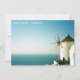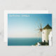 Imagen acuática de un molino de viento a orillas de la caldera de Oia, en la isla griega de Santorini