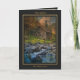 Hermoso molino del bosque junto a un arroyo Tarjeta de Navidad con ribete negro y dorado. Personaliza el saludo. Creado por Kathy Kelly de https://3-kathy-kelly.pixels.com/.